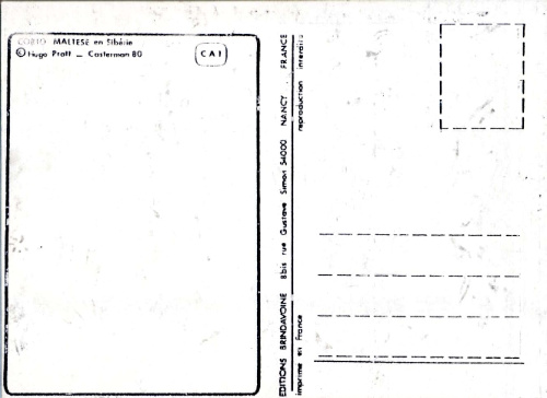 Commentaire : Carte probablement pirate. Il est noté au dos "Corto Maltese en Sibérie". Correspond à la case 8, page 27.
