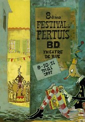 Commentaire : Dessin original pour le 8ème festival de Pertuis BD Théâtre de rue les 9-10-11 mai 1997.