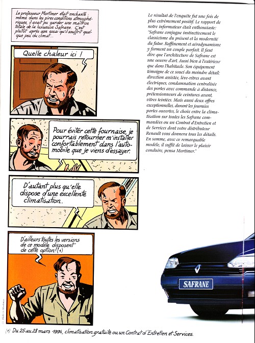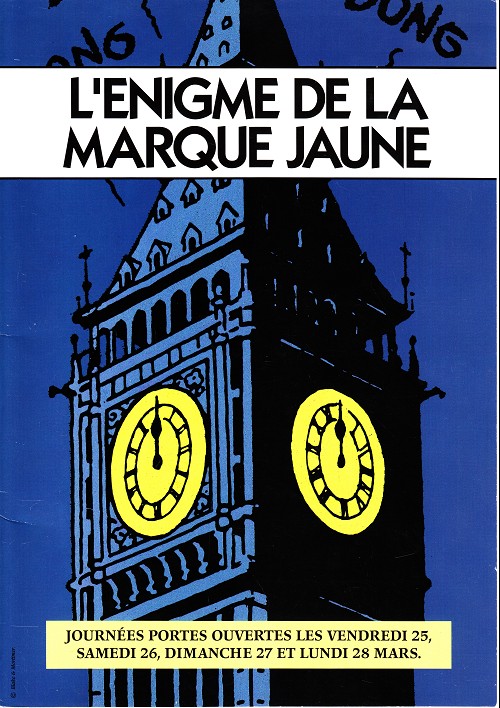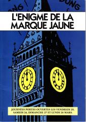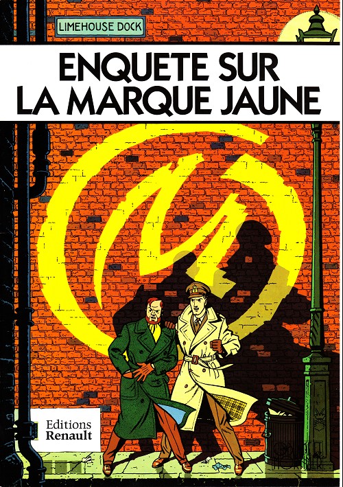 Commentaire : Dépliant 20 pages distribués à l'occasion des journées portes ouvertes dans le réseau Renault Belgique. Une histoire originale concernant les voitures Renault a été superposée sur des dessins de la BD d'origine "La Marque Jaune". Des explications spécifiques concernant des modèles de voiture Renault on été ajoutées et intégrées à l'histoire.