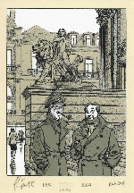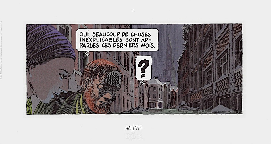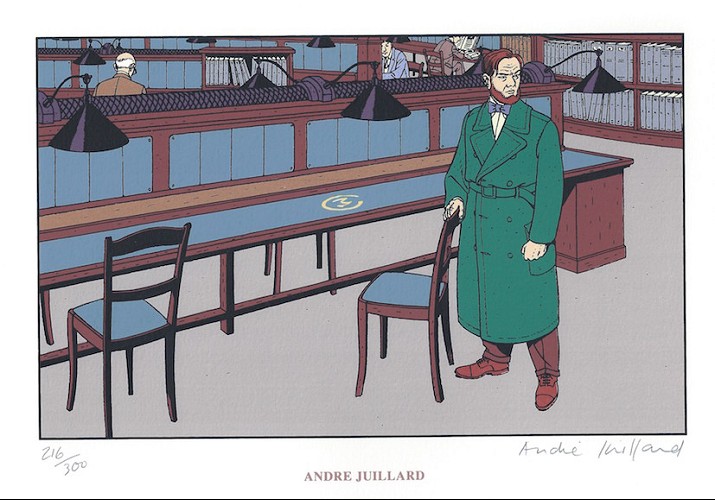 Commentaire : Cet ex-libris collé dans l'album fait partie de l'offre initiale, signé par André Juillard et Yves Sente. Un autre ex-libris numéroté x/99 est réservé aux premiers souscripteurs.