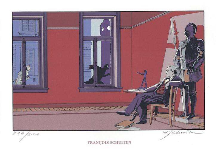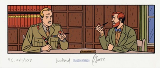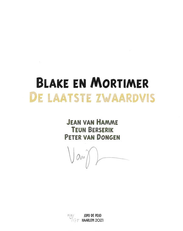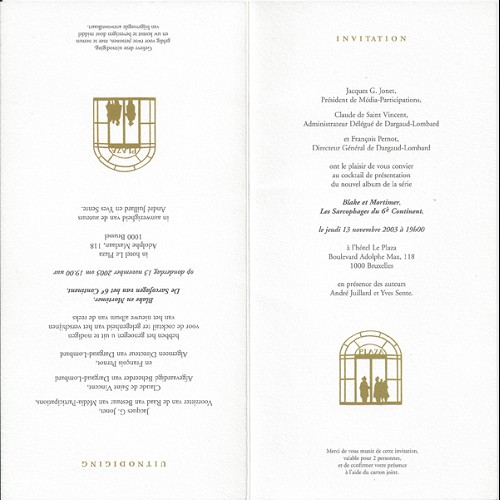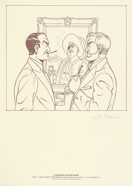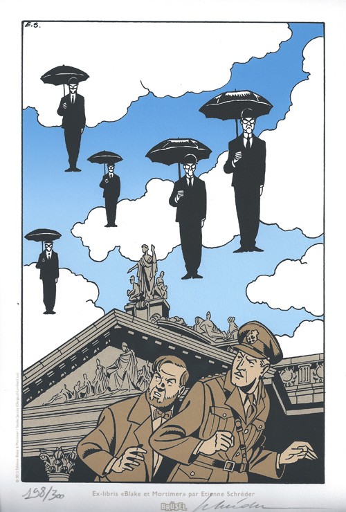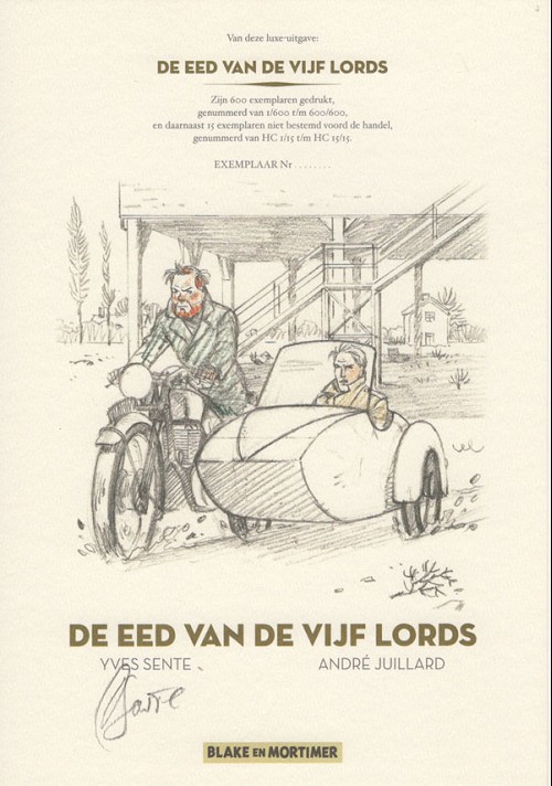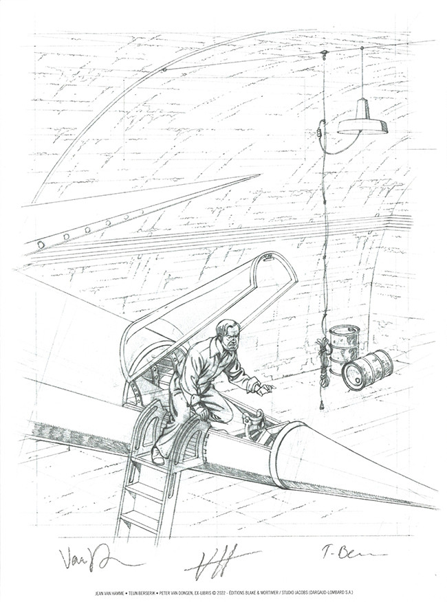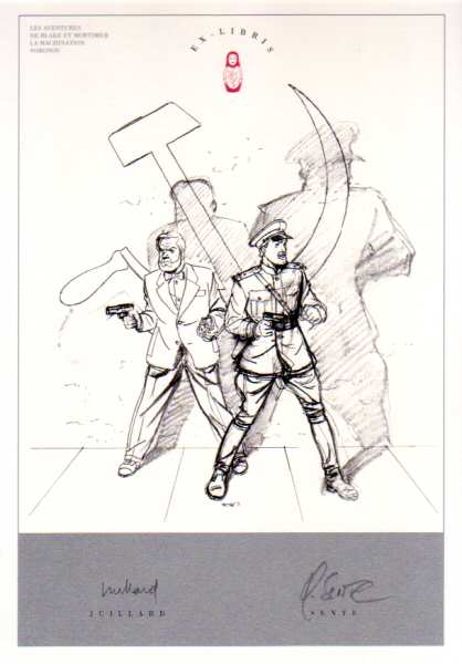 Commentaire : Ex-libris offert pout le tirage de tête néerlandais. Inspiré de la planche 45 A2. Signé par Yves Sente et André Juillard.