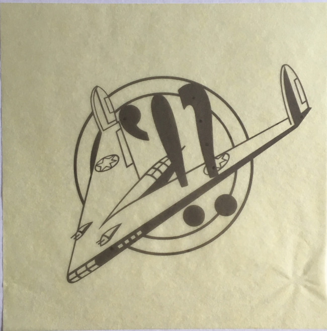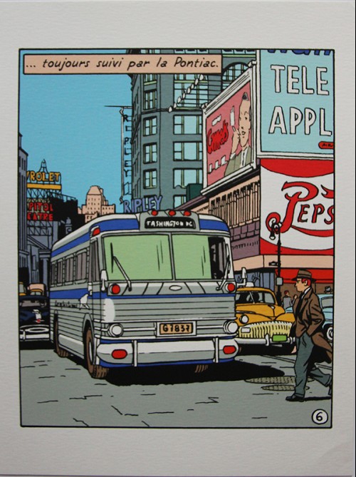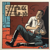Commentaire : Existe en 3 versions : Couleurs sérigraphiées, en noir et blanc (ici) et version avec trait noir sur film cellulo avec son aplat de couleurs.