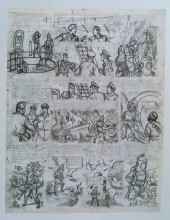 Commentaire : Carnet de 12 pages, contenant des reproductions de croquis, esquisses, études, crayonnés, planches.