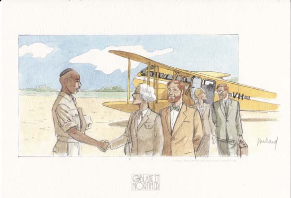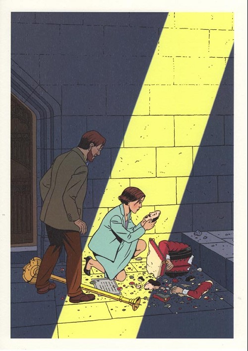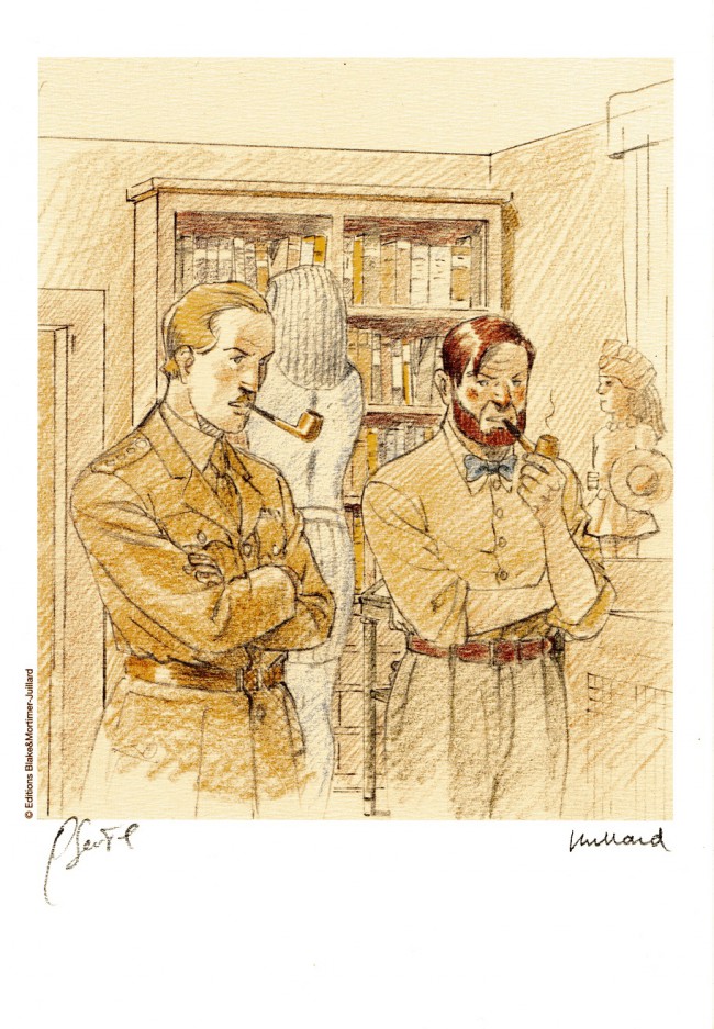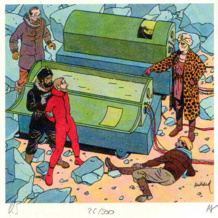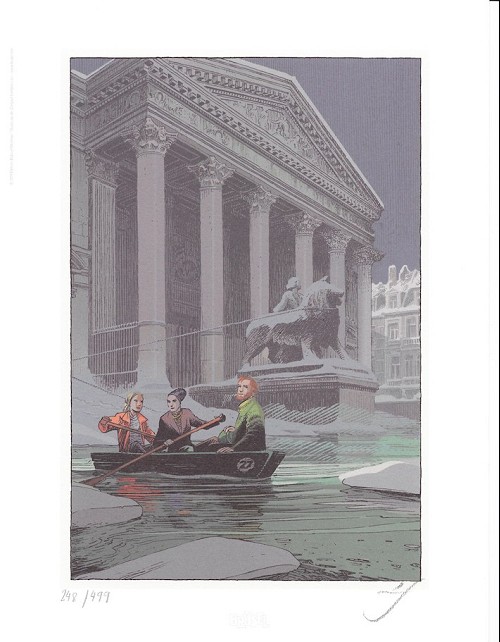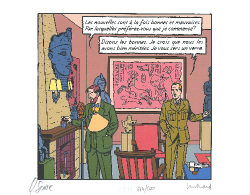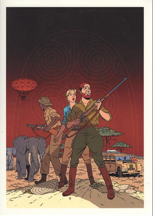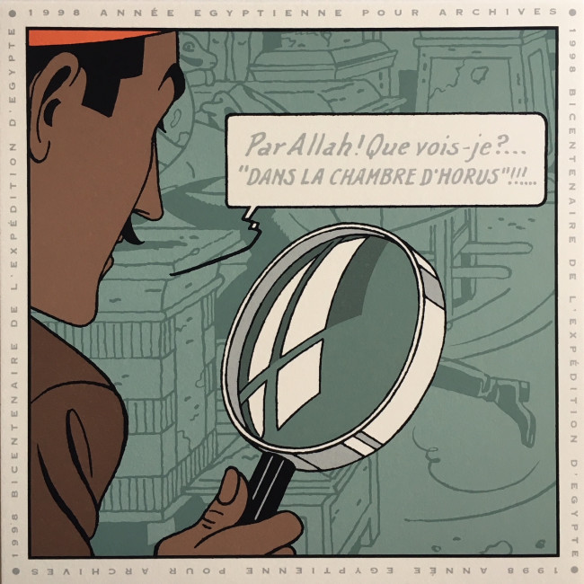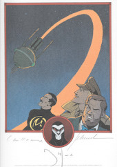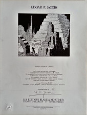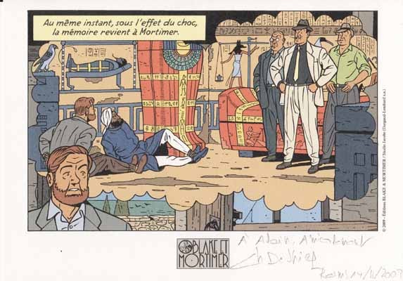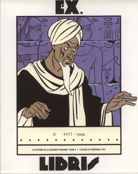 Commentaire : Ex-libris réalisée par le journal "Les Echos" à l'occasion de la sortie du tome 1 du diptyque "Les sarcophages du 6ème continent" (existe aussi en carte postale). Signé par les auteurs.