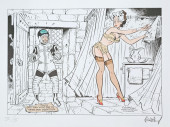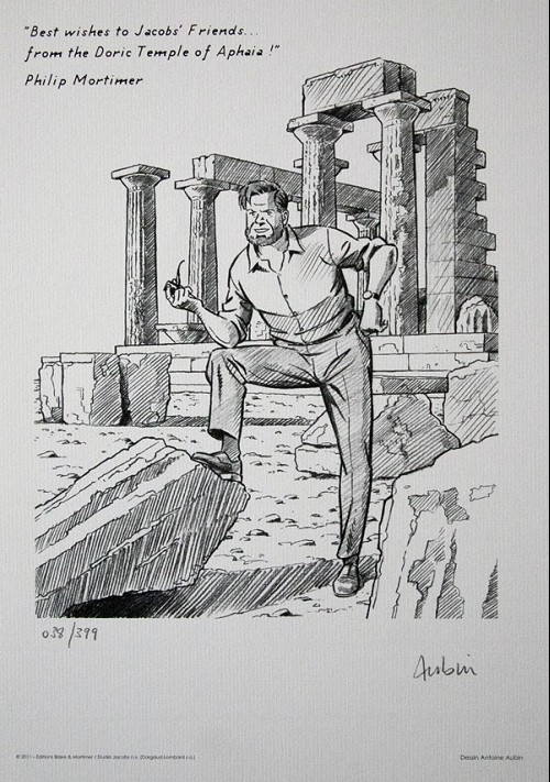 Commentaire : Ex-libris offert pout le tirage de tête Néerlandais. Inspiré de la planche 25/C1. Signé par Antoine Aubin et Jean Dufaux. Non numéroté.