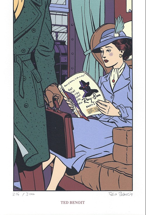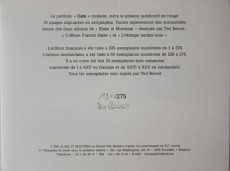 Commentaire : Cet ex-libris collé dans l'album fait partie de l'offre initiale, il est signé par Ted Benoit et Madeleine De Mille. Un autre ex-libris numéroté /399 est réservé aux premiers souscripteurs.
