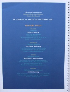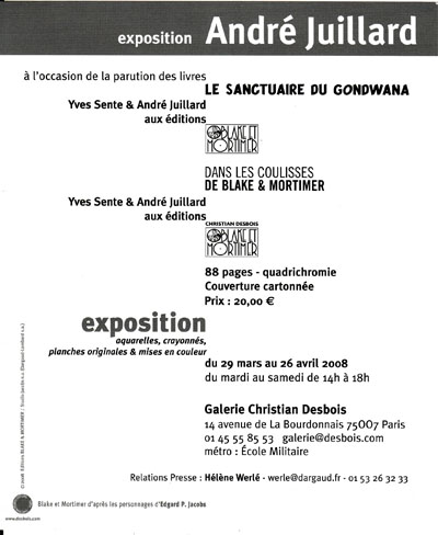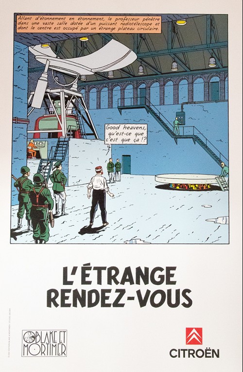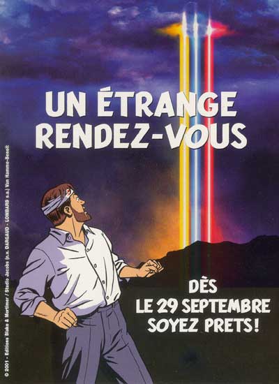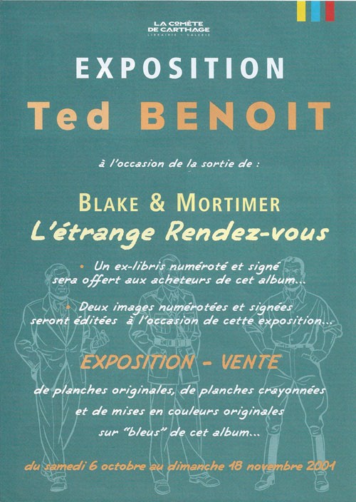 Commentaire : Flyer relative à l'exposition des bleus et planches originales de la BD : L'Etrange Rendez-vous, à la Comète de Carthage, 10-11/2001 à Paris.