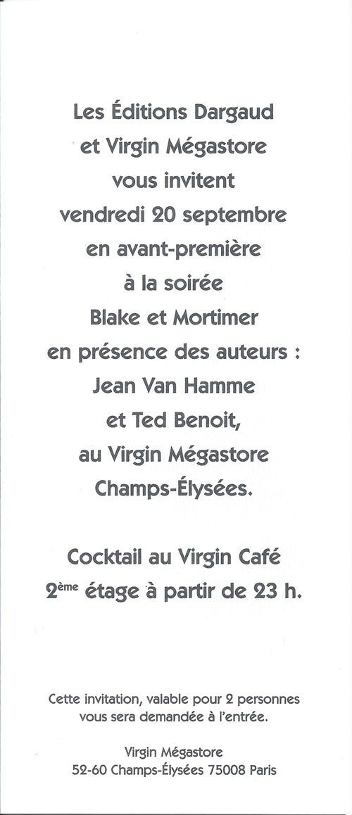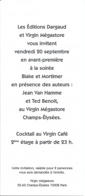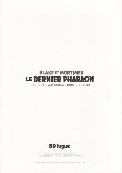 Commentaire : Offert par les Editions Blake et Mortimer.