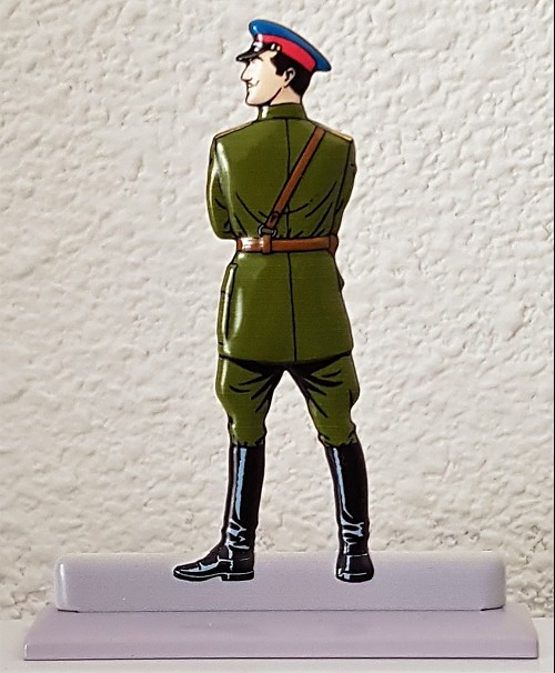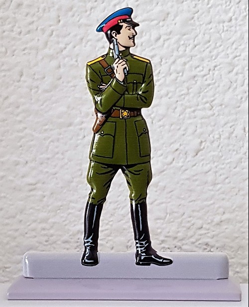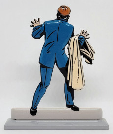 Commentaire : Statuette plate (3mm d'épaisseur). Noté sous le pied "© Juillard - Sente - Blake et Mortimer / Studio Jacobs (Dargaud-Lombard s.a.) 2020". Cadeau d'une offre promotionnelle lors de laquelle une statuette (parmi 4 différentes) est offerte à l'achat de 2 albums.