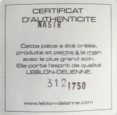 Commentaire : La sculpture est à l'échelle 1/3, il mesure 67 cm socle inclus. Les tirages seront réalisés en bronze composite patinés, avec un socle en résine noire. Le tout livré avec son certificat signé par André Juillard et Samuel Boulesteix. Les partenaires sur ce projet sont Bdflash et collector BD.