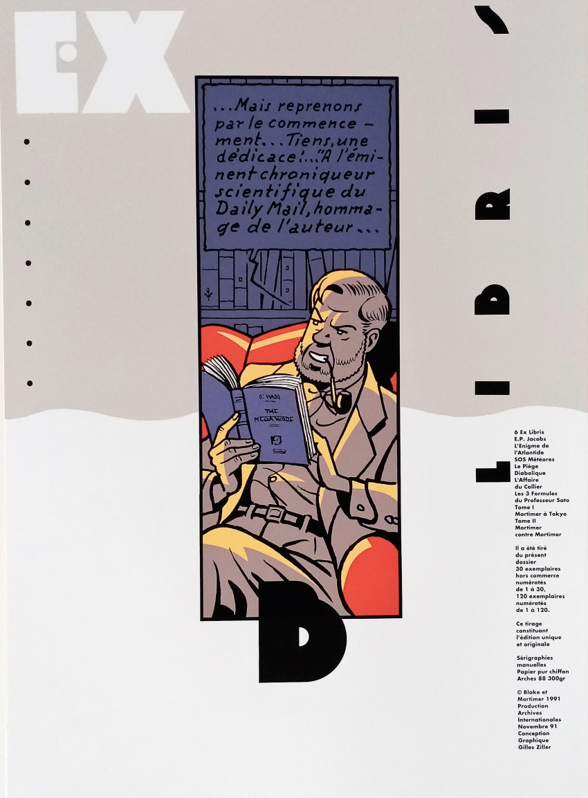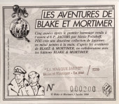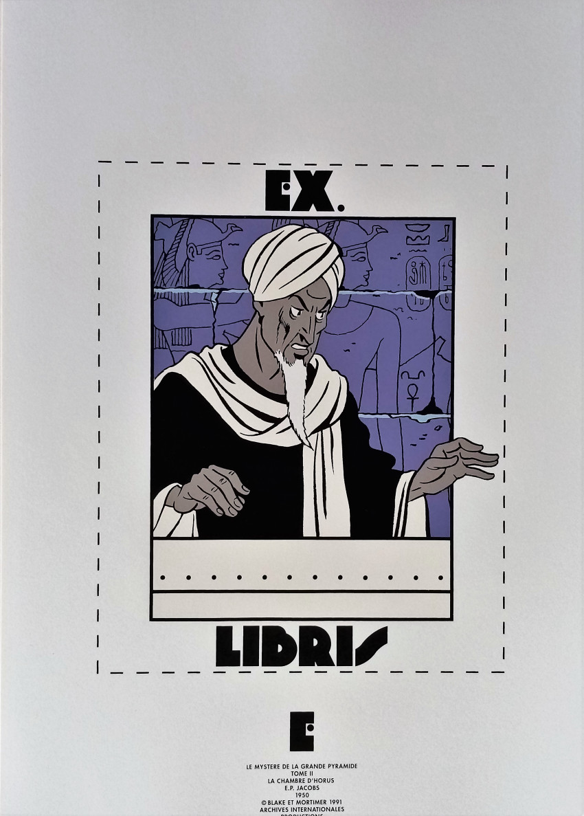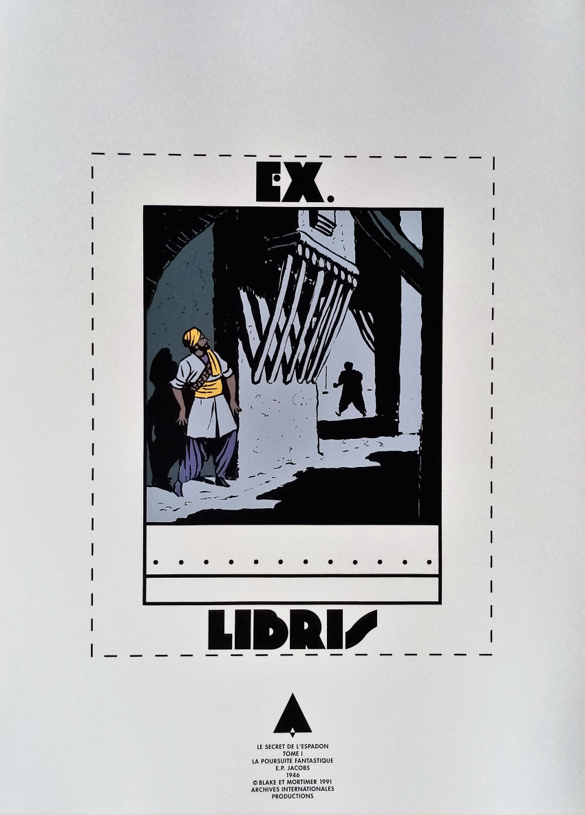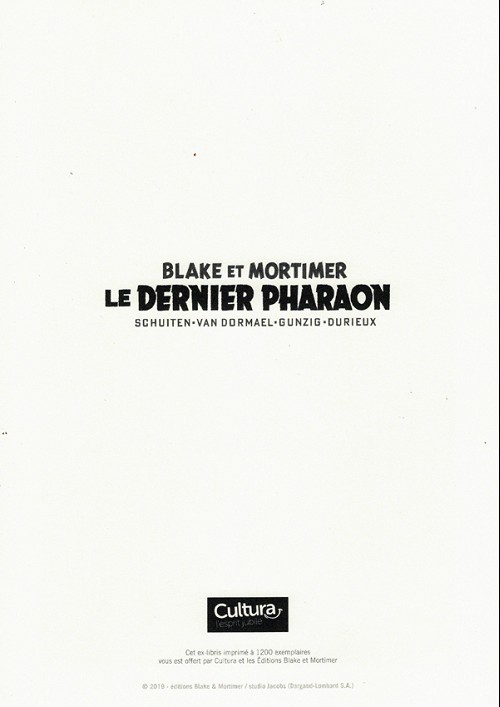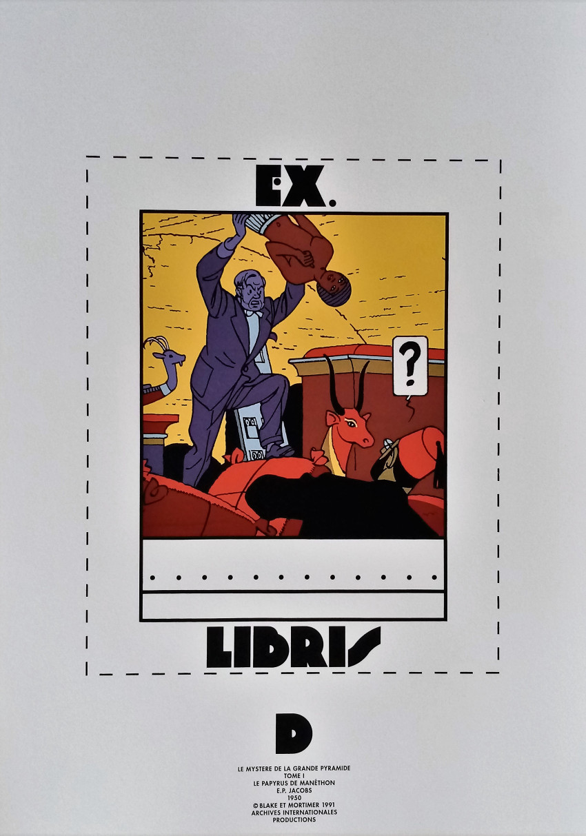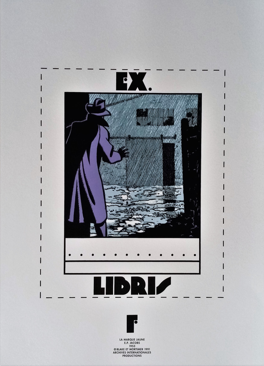 Commentaire : Ex-libris inclus dans le coffret édité à l'occasion de la sortie du Tome 20 avec la Monnaie de Paris (1 500 exemplaires). Le coffret contient les 2 tomes (19 et 20) en édition originale + un coffret "Monnaie de Paris" avec la réplique du Denier de Tibère et une médaille en cuivre "Blake et Mortimer".