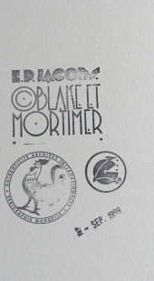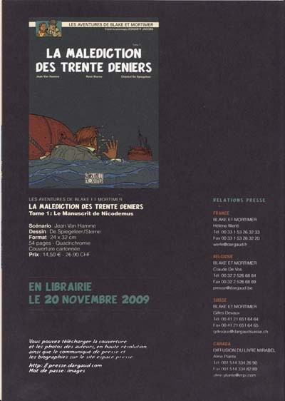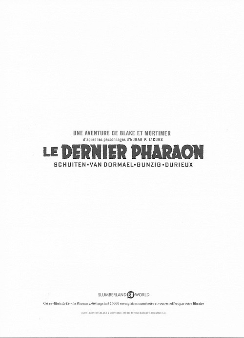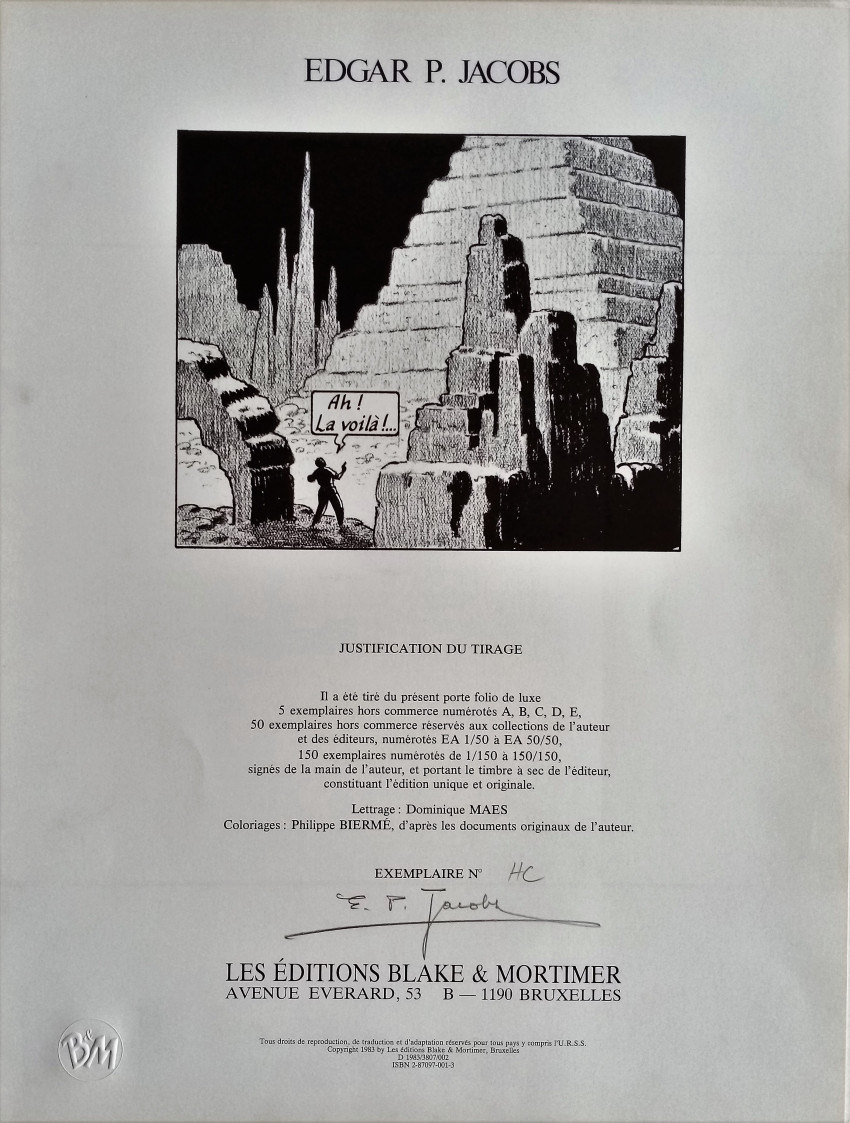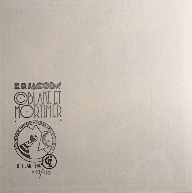 Commentaire : Licensed by Hyphen © 2009 - Editions Blake et Mortimer - Studio Jacobs n.v. (Dargaud - Lombard s.a.) © Hugo et Cie 2009 Imprimé en septembre 2009 par Stige , Italie Dépôt légal octobre 2009