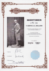 Commentaire : Ex-libris numéroté et signé par Y.Sente et A.Juillard collé au revers de la page de garde et servant de justificatif de tirage.