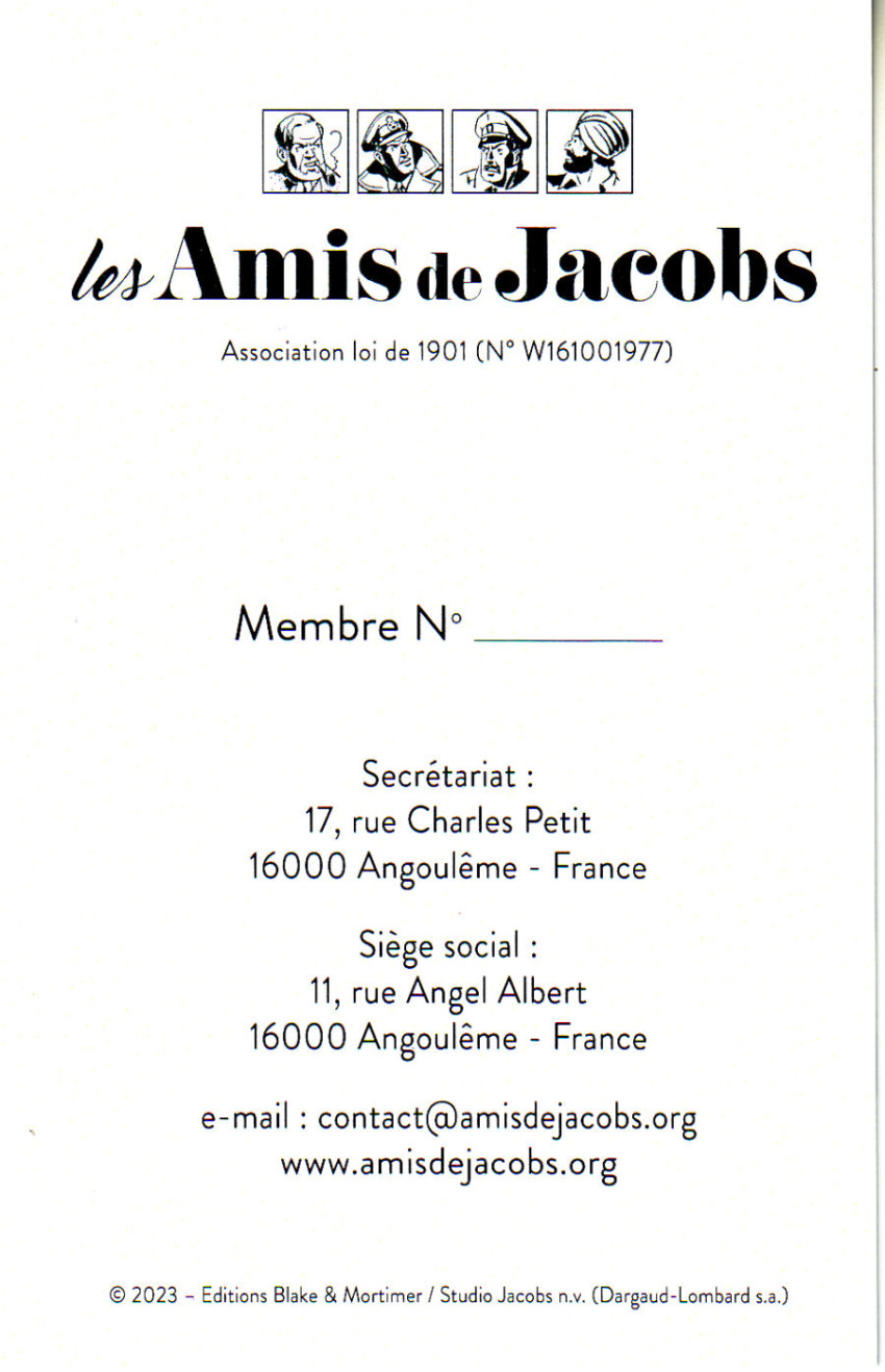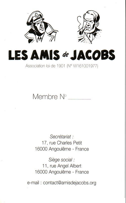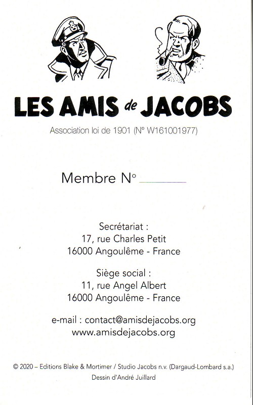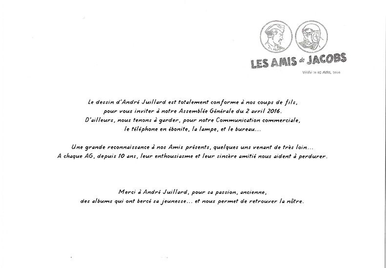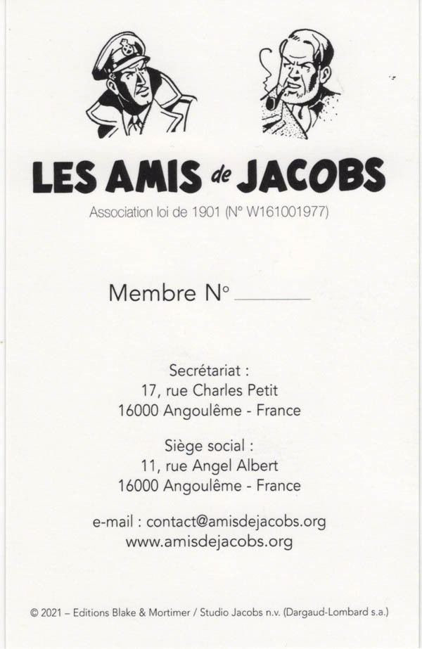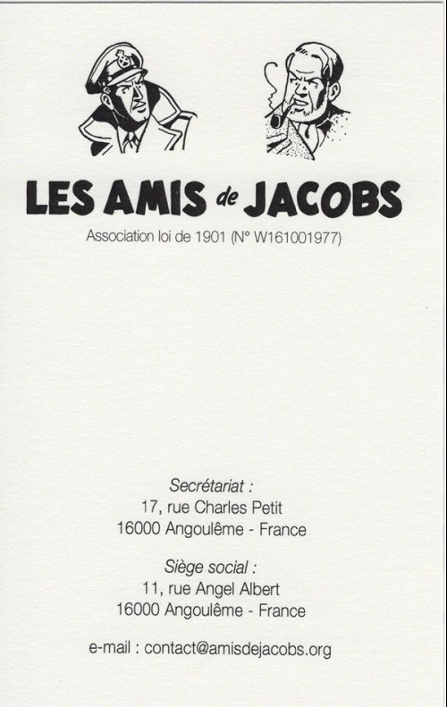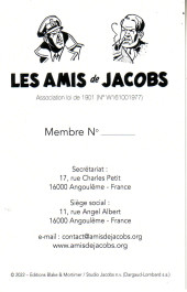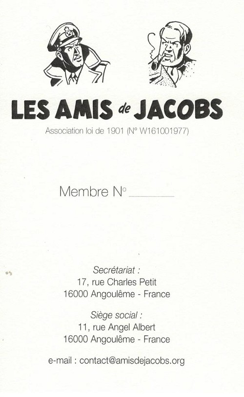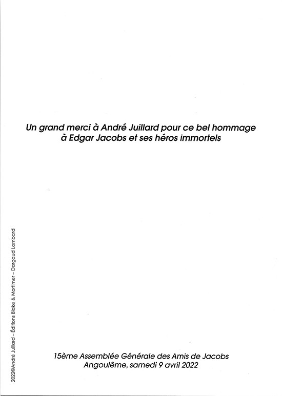 Commentaire : Offert lors de la 15ème Assemblée Générale des Amis de Jacobs, Angoulême, samedi 9 avril 2022.