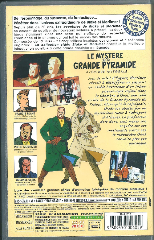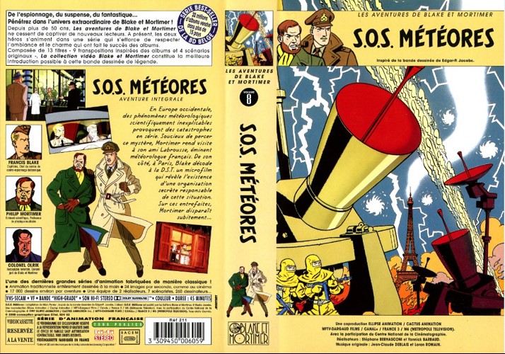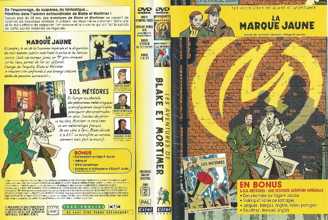Commentaire : Contient les dessins animés suivants et un bonus: DVD 1 Le Secret de l'Espadon L'Affaire du collier L'Enigme de l'Atlantide DVD 2: La Marque jaune SOS météores Le Piège diabolique DVD 3 Le Mystère de la grande pyramide Les 3 formules du professeur Sato L'affaire Francis Blake DVD Bonus : un documentaire sur Edgar.P.Jacobs.