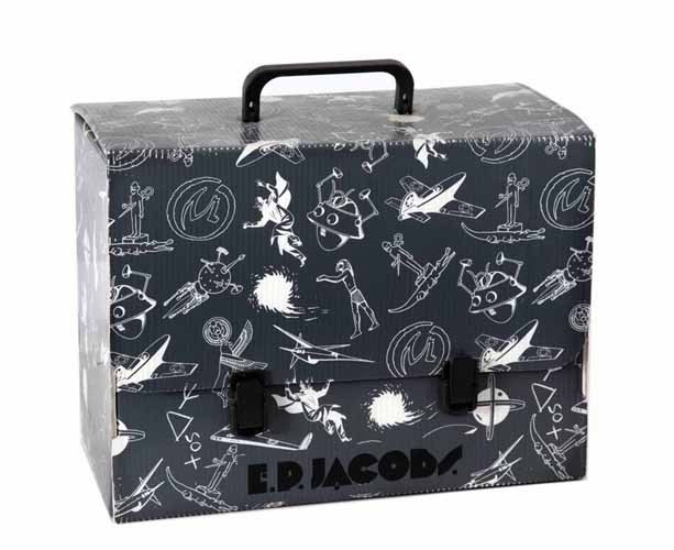 Commentaire : Valise grise comprenant les 12 albums + le Rayon U, 1 portfolio de 13 ex-libris numérotés et 1 épinglette