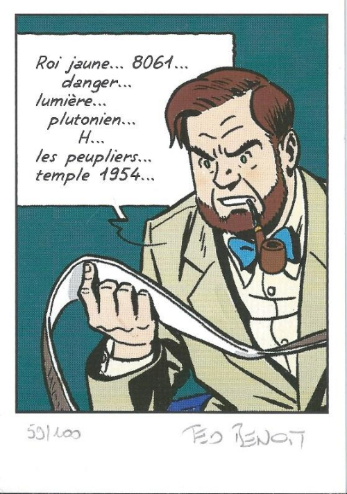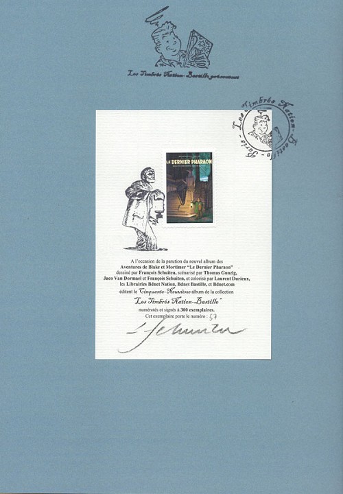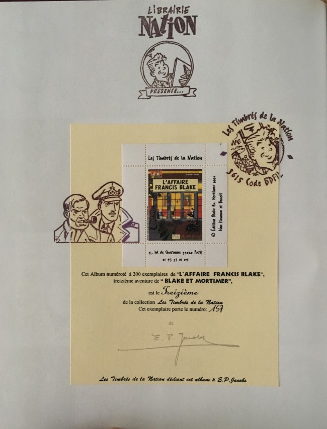 Commentaire : A noter que ce Timbré de la nation n'est pas signé par les auteurs Ted Benoit et Jean Van Hamme, mais une réplique de la signature de E.P Jacobs est apposée