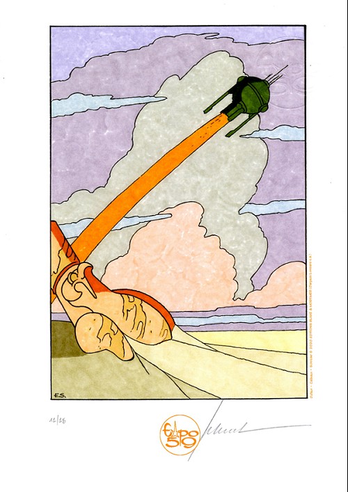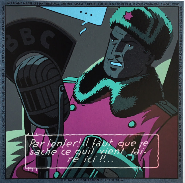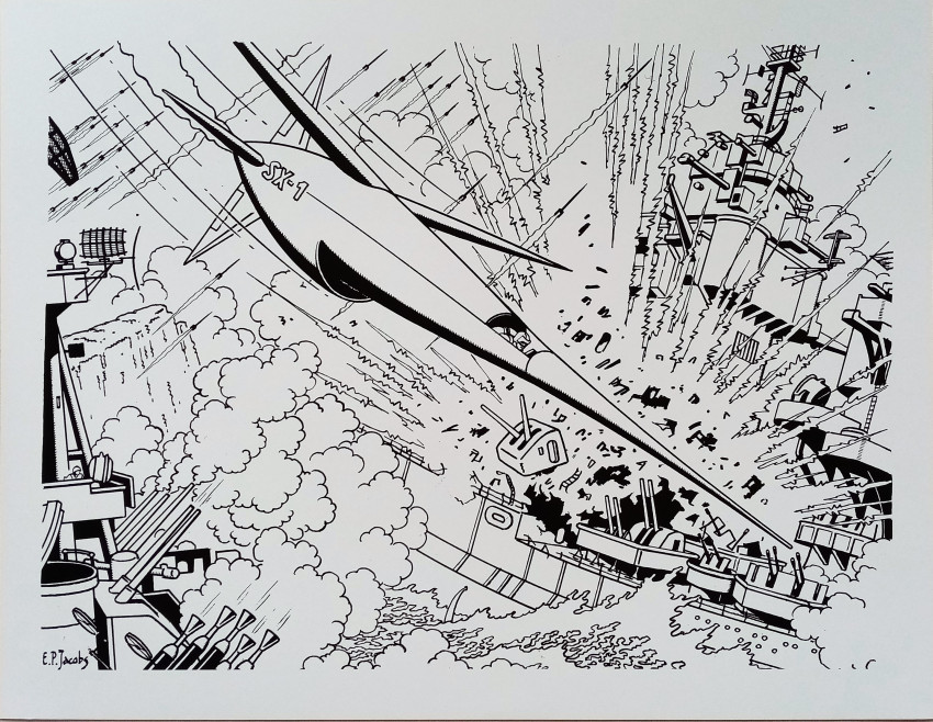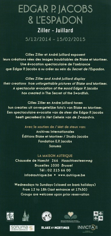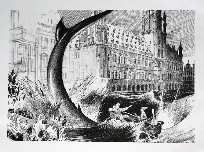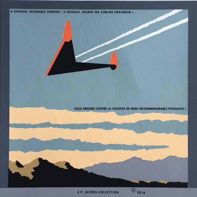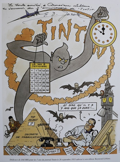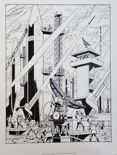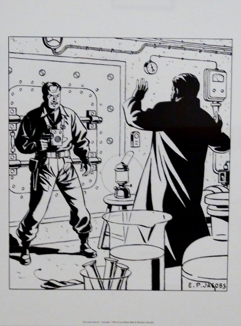 Commentaire : Dessin original pour l'exposition Edgard P. Jacob & L'Espadon à La Maison Autrique à Bruxelles (Belgique) du 5/12/2014 au 15/02/2015