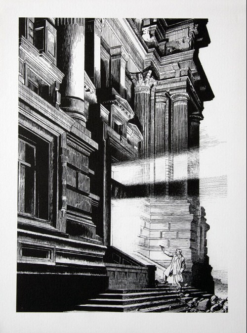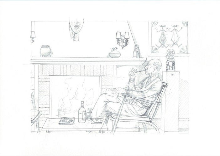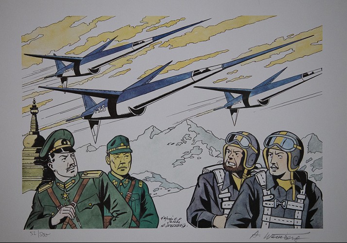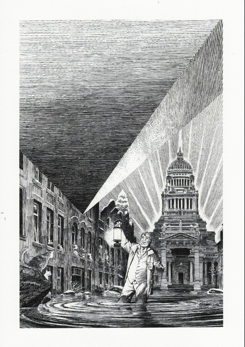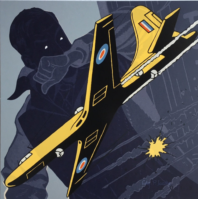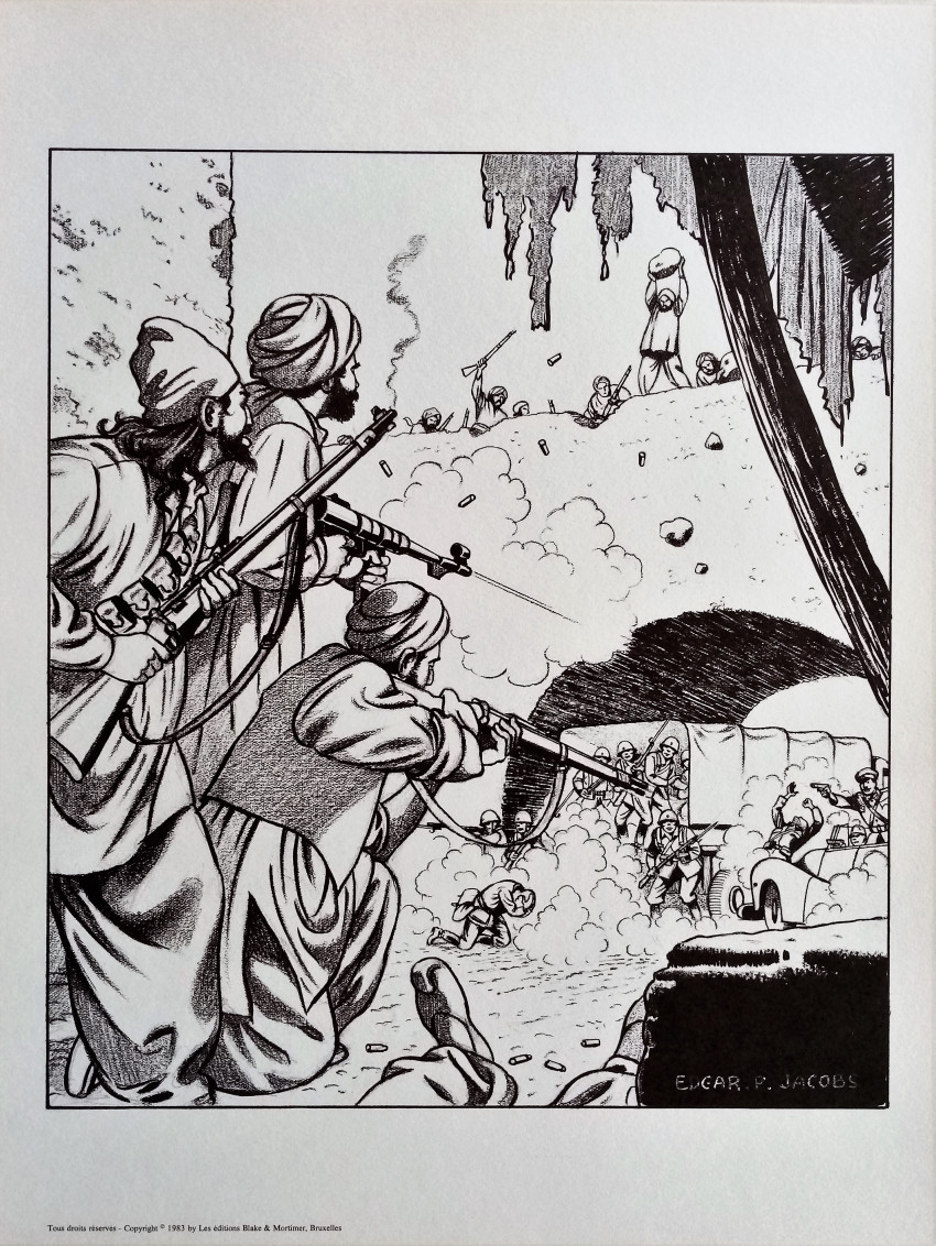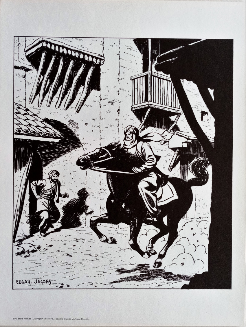 Commentaire : Dessin original pour l'exposition Edgard P. Jacob & L'Espadon à La Maison Autrique à Bruxelles (Belgique) du 5/12/2014 au 15/02/2015