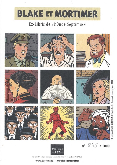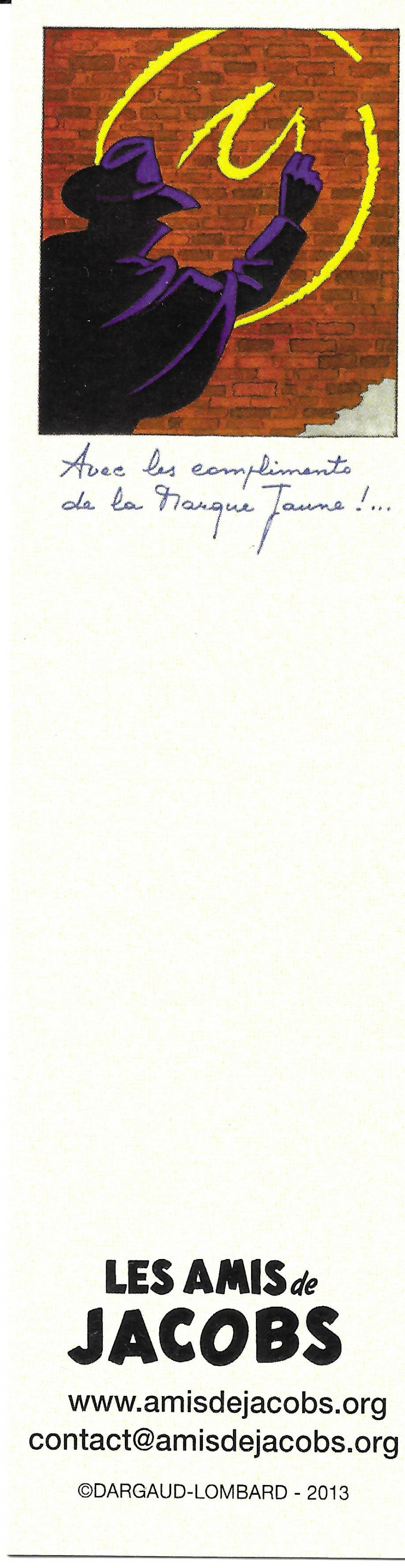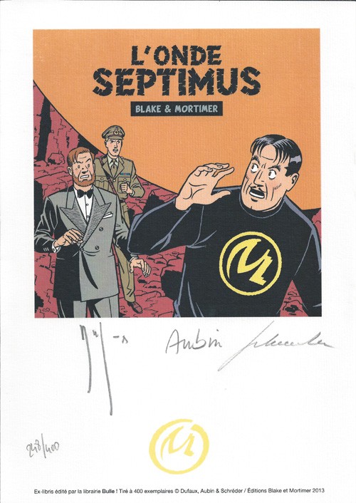 Commentaire : Ex-libris distribué à l'occasion du rallye de la Marque Jaune dans les rues de Paris, le 6 décembre 2013. Opération marketing le jour de la parution de l'Onde Septimus. Ex-libris distribué uniquement le 6 Décembre 2013, lors de la journée rallye Marque Jaune.