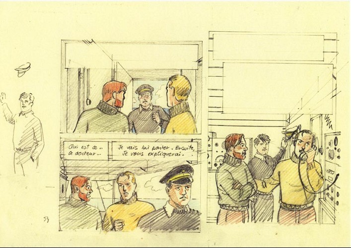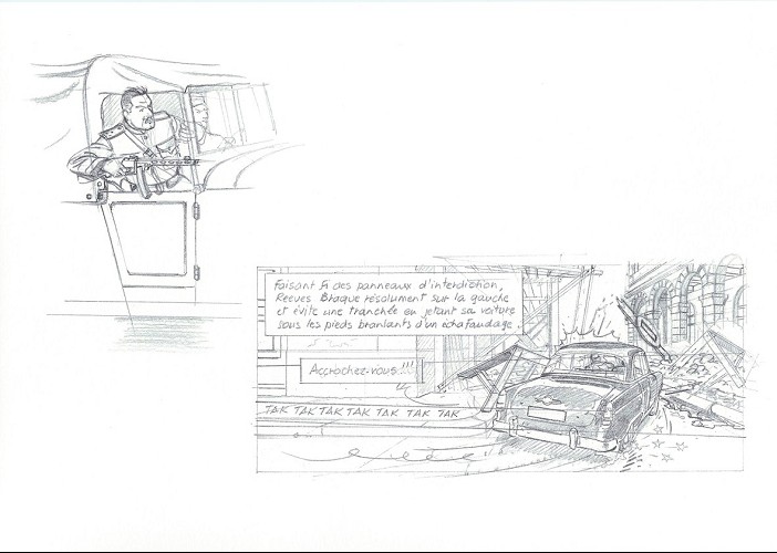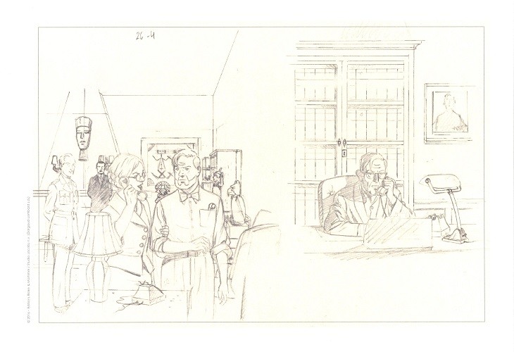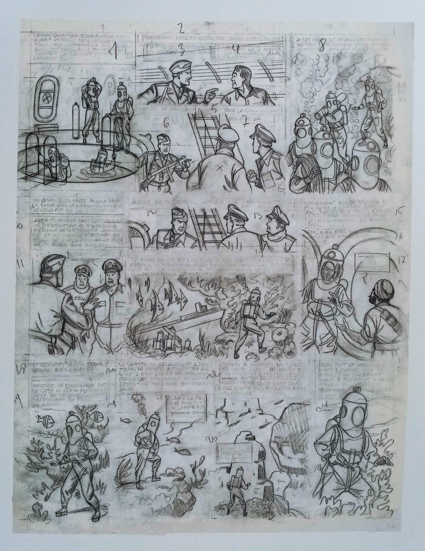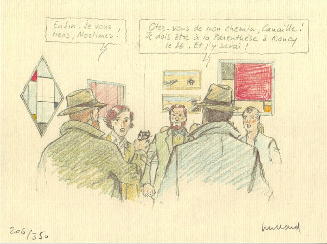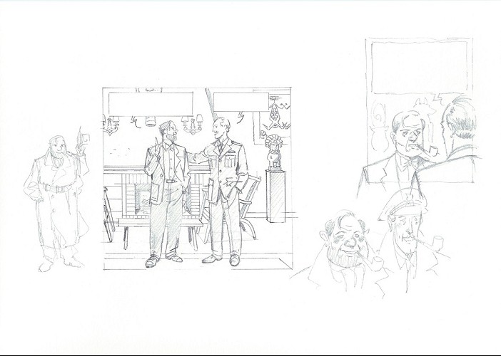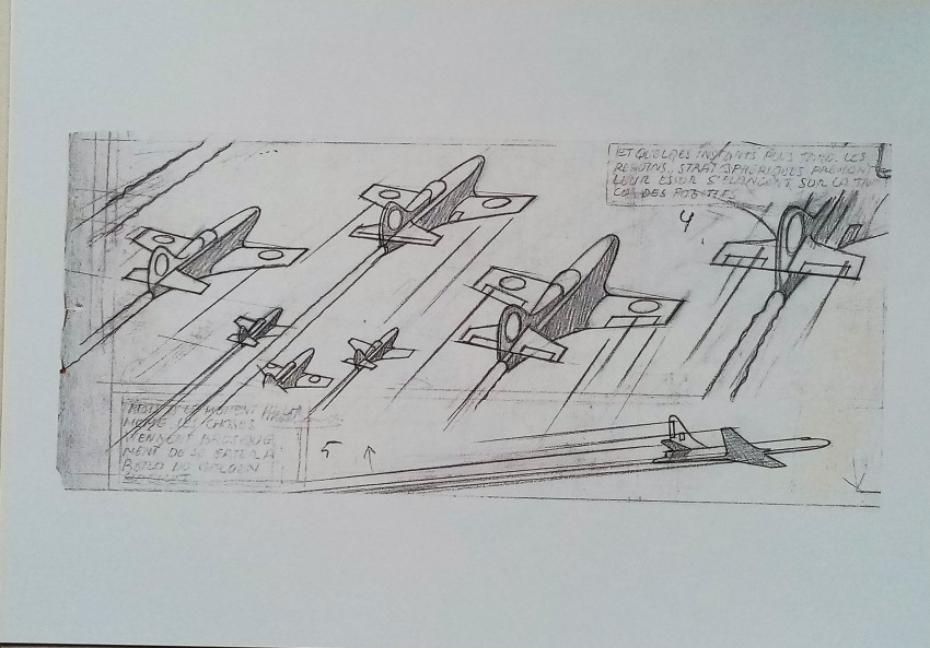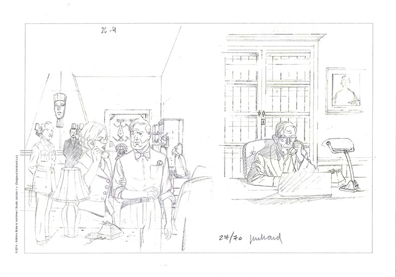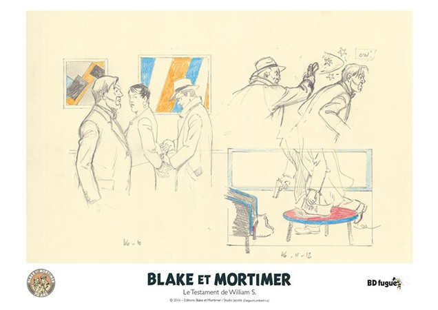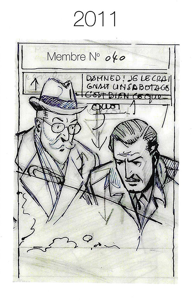 Commentaire : Offert exclusivement aux adhérents présents à l'assemblée Générale du 2 avril 2016. Crayonnés de 2 cases, planche 26 : A4 ET B1.