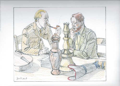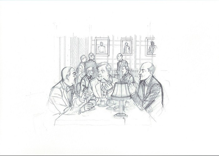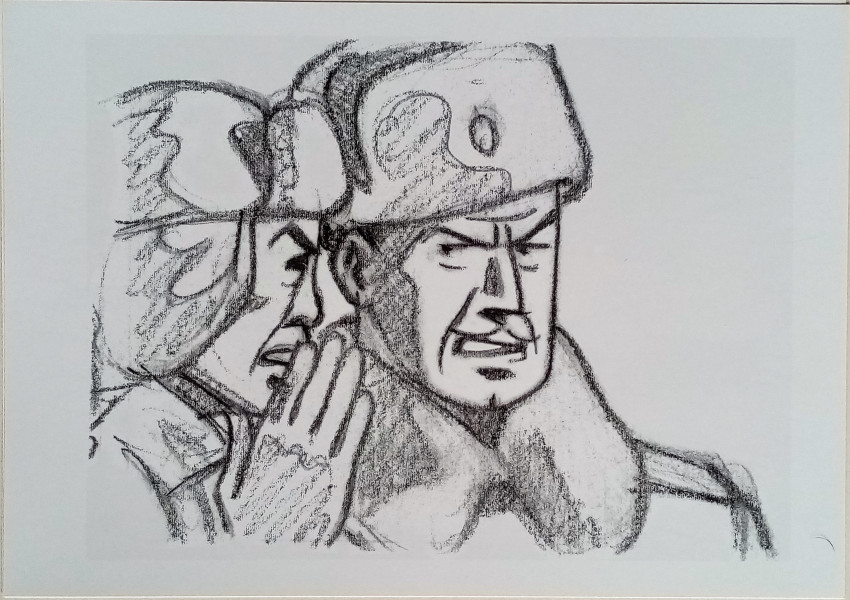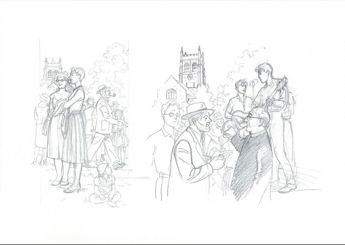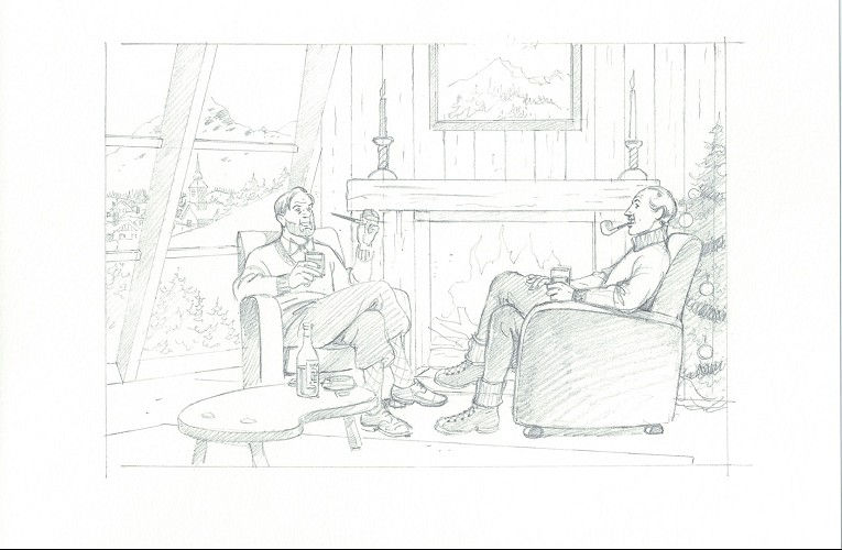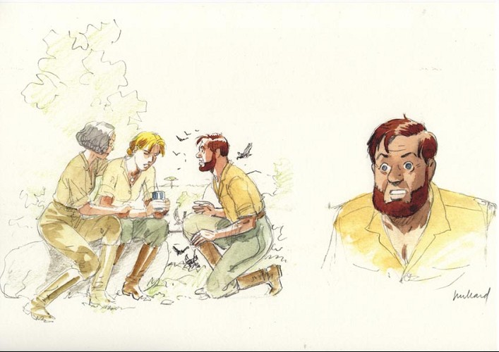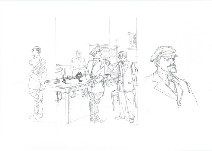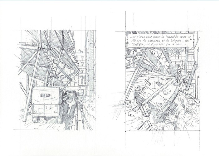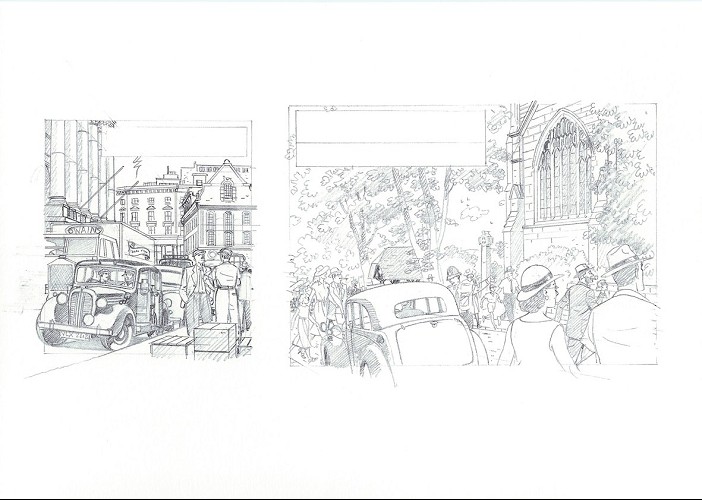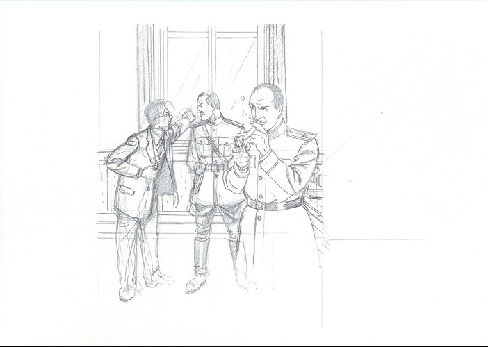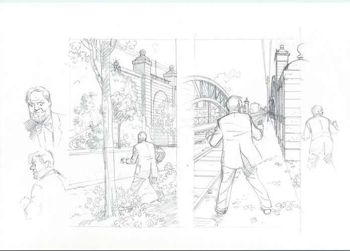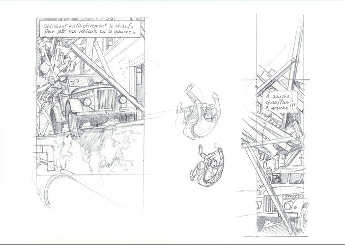 Commentaire : Offert exclusivement aux adhérents présents à l'assemblée Générale du 2 avril 2016. Crayonnés de 2 cases, planche 26 : A4 ET B1.