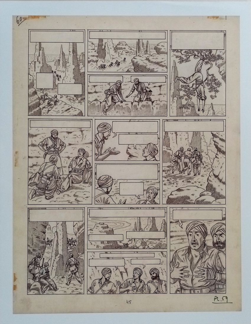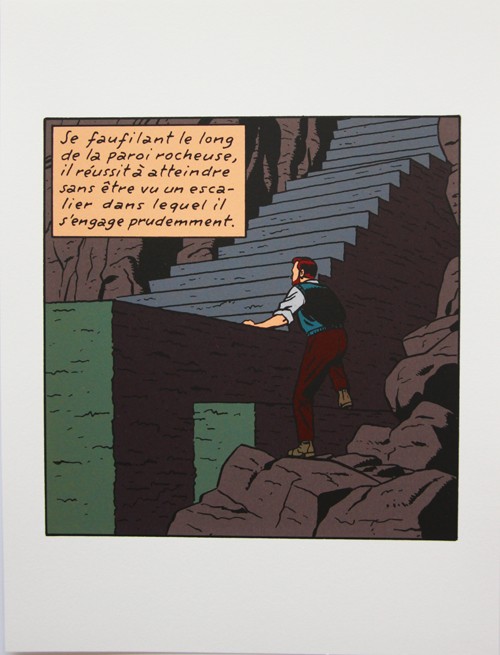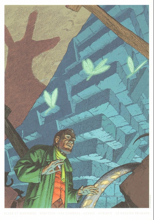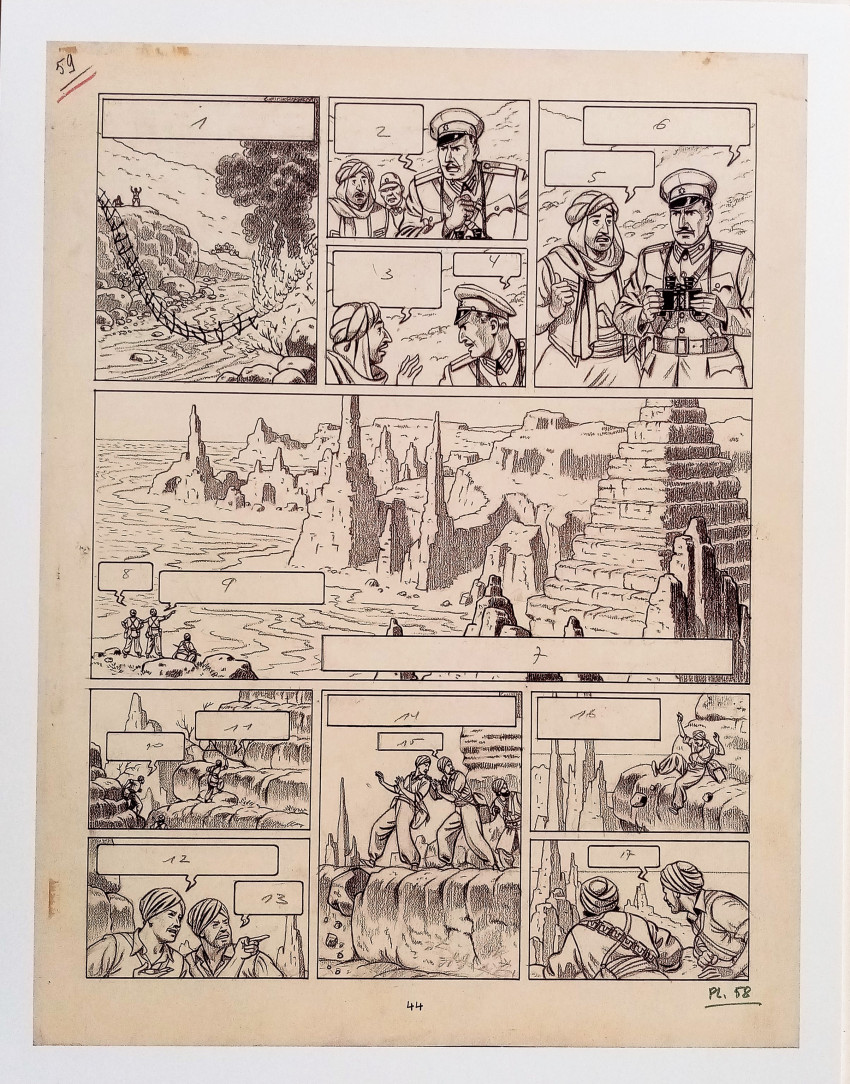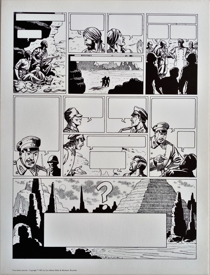 Commentaire : Bleu de la planche 43 de l'album Le Mystère de la Grande Pyramide, tome 2.