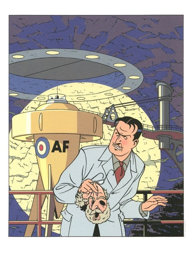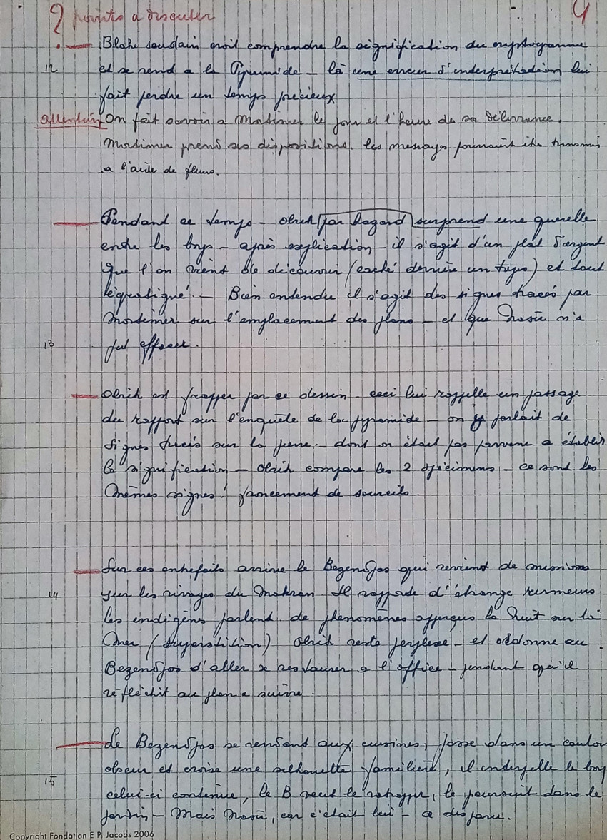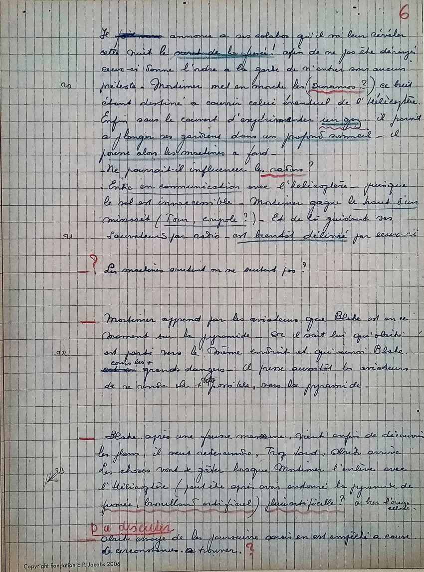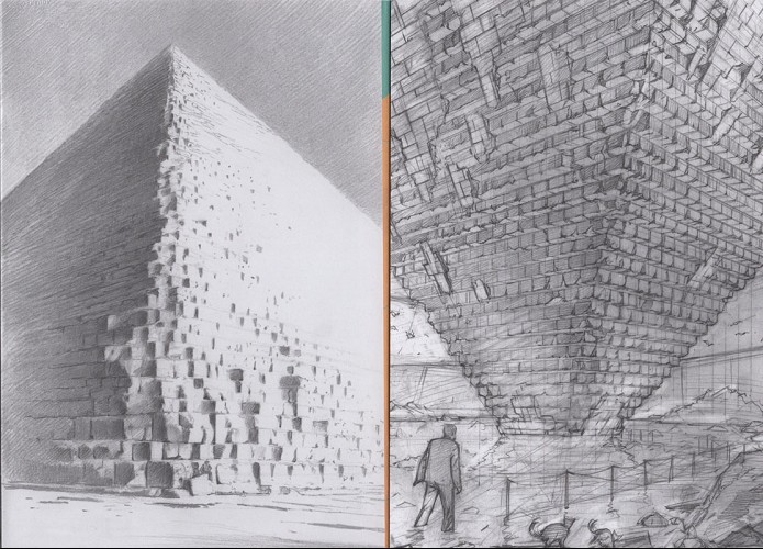 Commentaire : Bleu de la planche 43 de l'album Le Mystère de la Grande Pyramide, tome 2.