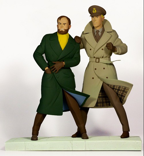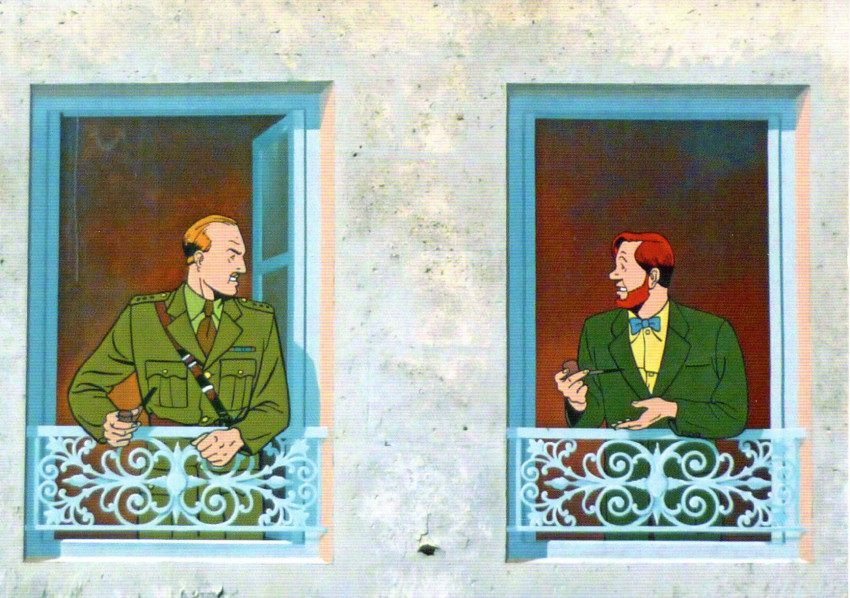 Commentaire : Personnages : Mortimer et le professeur Labrousse, sculptés par Bruno Vaerman.
