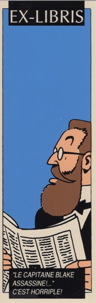Commentaire : Offert avec l'intégrale de "La Malédiction des trente deniers" éditée par Bruno Graff. Reprend le visuel de la planche 16 du tome 19. Cet ex-libris est commun au tirage de l'ouvrage : 350 exemplaires pour le tirage Album et 350 exemplaires pour le tirage Bruno Graff.