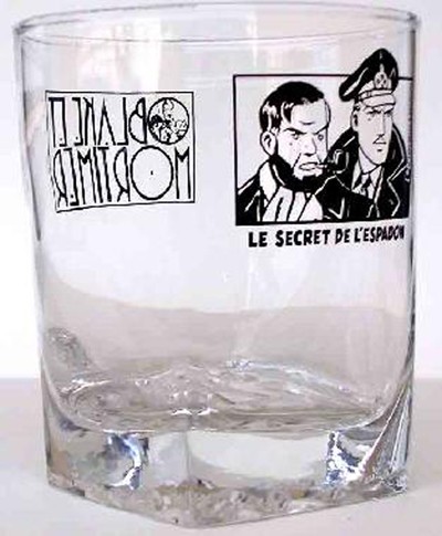 Commentaire : Verre à whisky, crée par la moutarde Amora en 1997, illustration issue de l'album "Le secret de l'espadon".