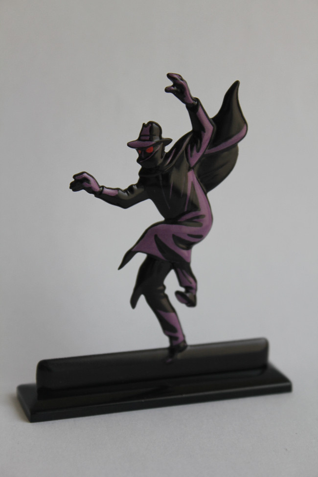 Commentaire : Statuette plate (3mm d'épaisseur). Noté sous le pied "© 2017 Black et Mortimer / Studio Jacobs (Dargaud-Lombard s.a.)". Cadeau d'une offre promotionnelle lors de laquelle une statuette est offerte à l'achat de 2 albums.