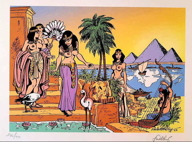 Commentaire : Dessin inédit de Walthéry. Cadeau à la souscription de l'album "Le Mystère de la Grande Pyramide - Tome I" par Golden Creek.