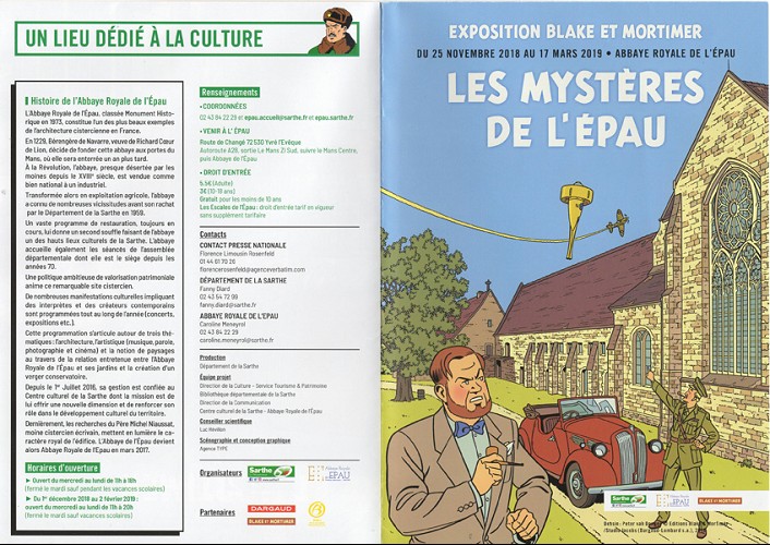 Commentaire : Dépliant 2 volets, se dépliant pour former une affiche format 297x420mm Réalisé pour l'exposition intitulée "Les mystères de l'Epau" à l'Abbaye de l'Epau, du 25 novembre 2018 au 17 mars 2019.