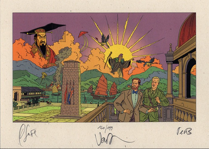 Commentaire : Offert avec le tirage de tête reprenant les tomes 25 et 26 de La Vallée des Immortels. Signé par les trois auteurs (Yves Sente, Peter Van Dongen et Teun Berserik).