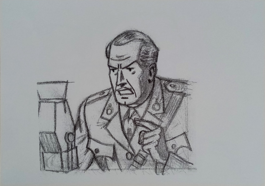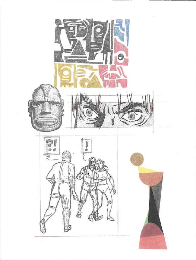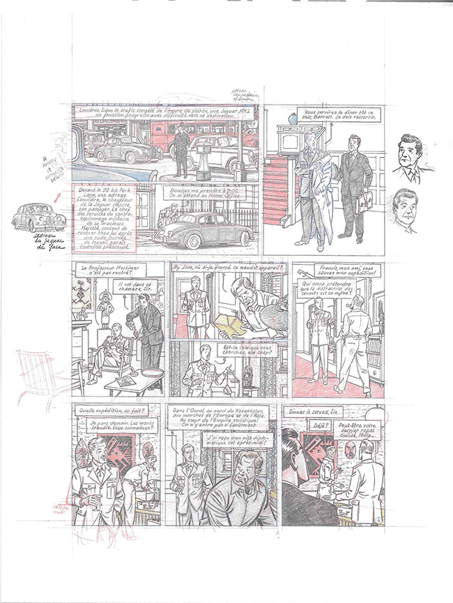 Commentaire : Croquis préparatoire d'Edgar P. Jacobs pour la couverture de La Marque Jaune.