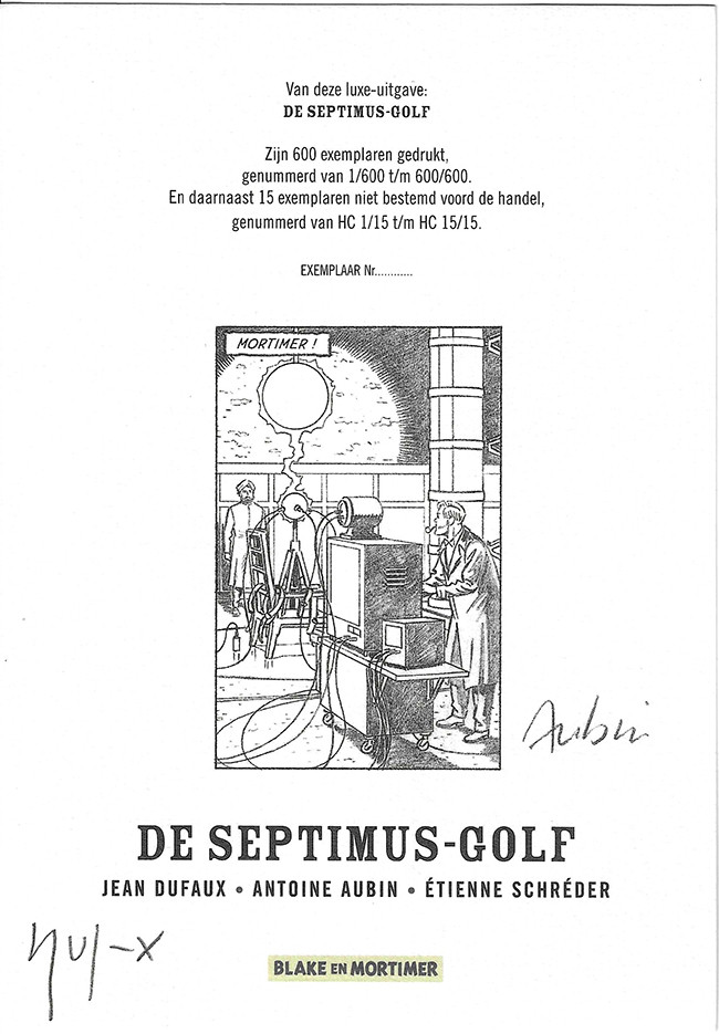 Commentaire : Les 30 exemplaires HC sont numérotés de HC1 à HC30; il existe également un exemplaire portant la lettre A.