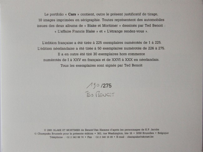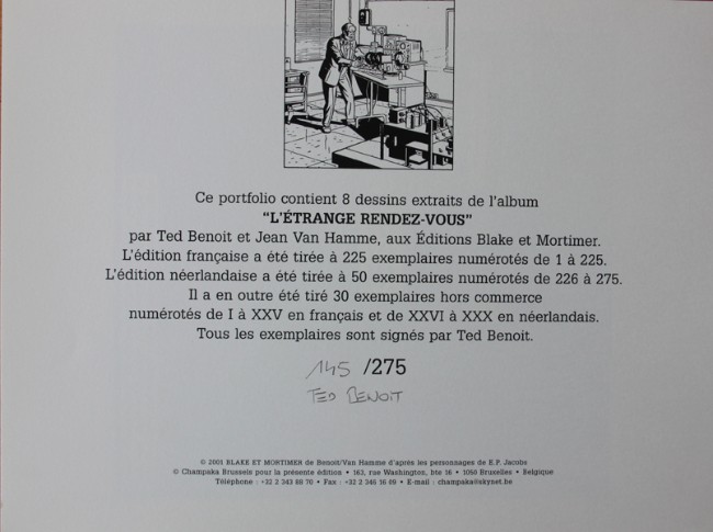 Commentaire : Signé par Ted Benoit et Jean Van Hamme, collé dans l'album.