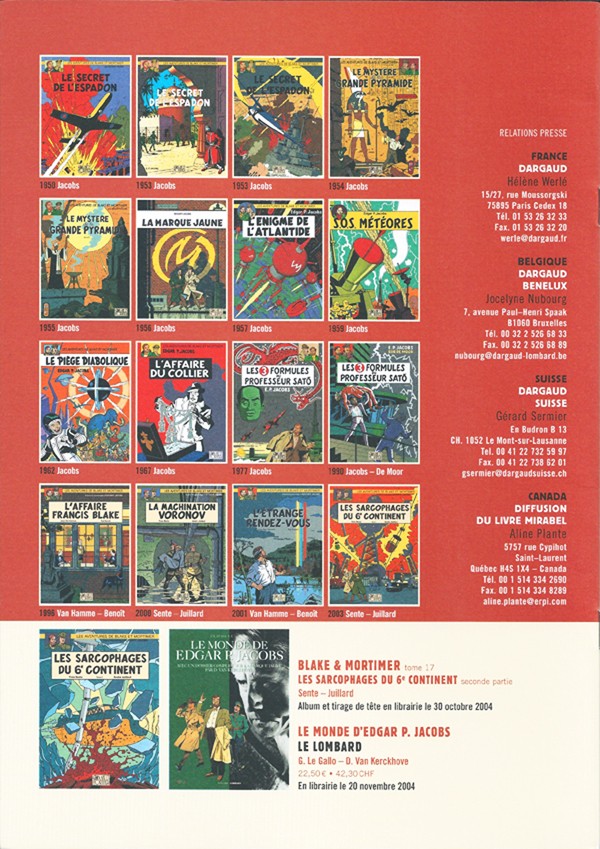 Commentaire : © 2003 Les Editions Blake & Mortimer (DARGAUD-LOMBARD s.a.)/Studio Jacobs Du 19 au 23 novembre 2003 dans le cadre du Salon de l'Education Gagnez l'édition spéciale ''Blake et Mortimer'' réalisé par Science & Vie ou ...