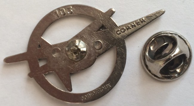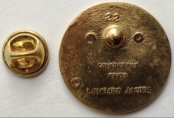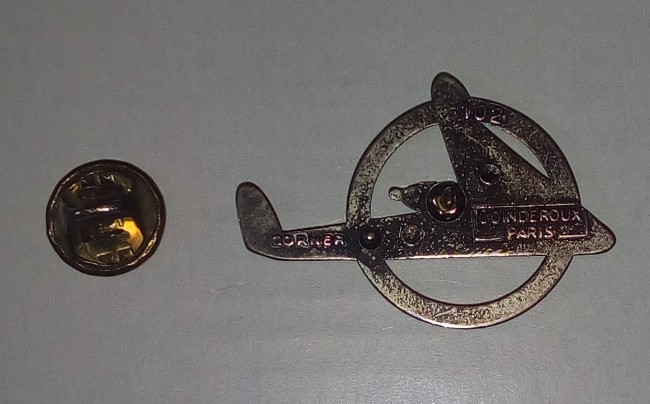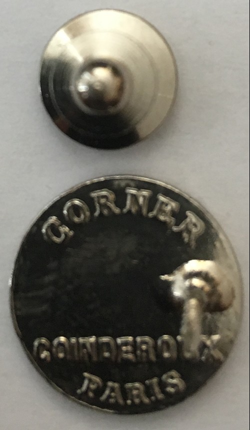 Commentaire : Au dos : Corner Coinderoux Paris. Attache à pompe, vendu dans une boîte Corner transparente avec fond papier noir. Existe en différentes variantes de support, taille et couleur.