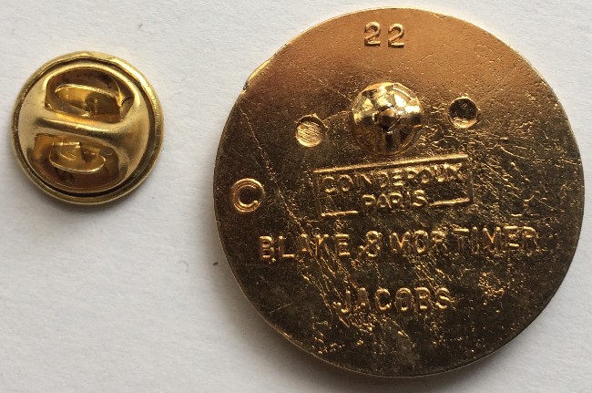 Commentaire : Au dos : 22 © Coinderoux Paris. Blake et Mortimer. Jacobs. Attache papillon. Existe en différentes variantes de couleur. Celui-ci, du fait du vernis qui le recouvre, est plus épais.