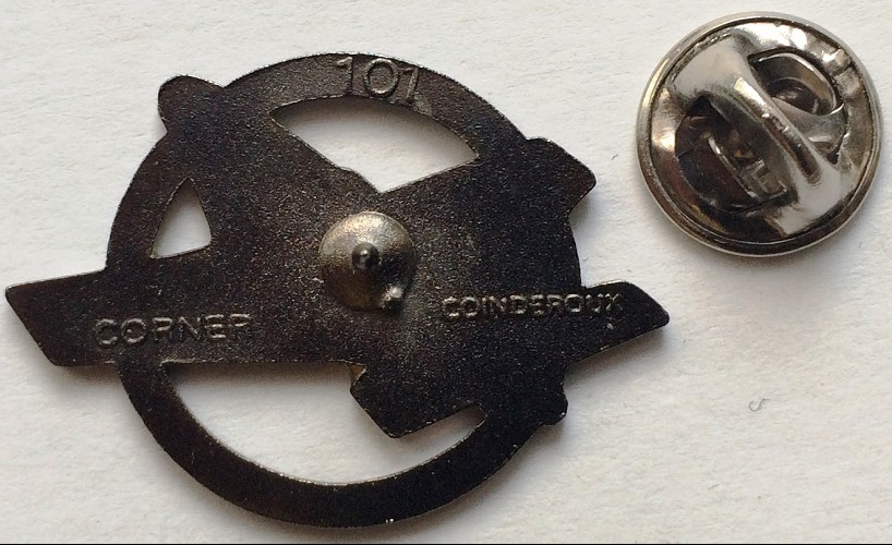 Commentaire : Epinglette en métal, peinte à la main livrée avec un protège-pointe.