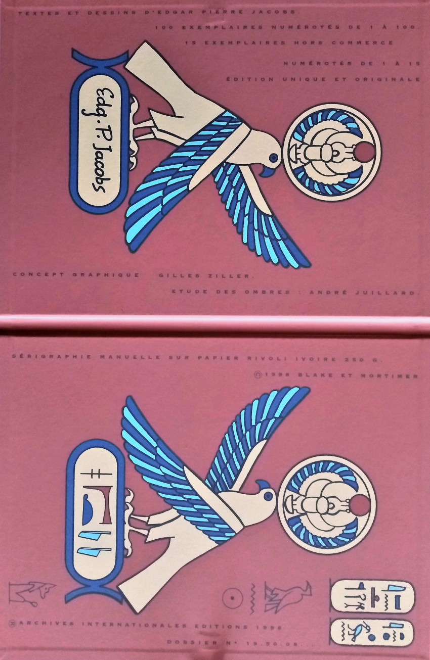 Commentaire : Ce coffret contient les 2 tomes 19 et 20 en édition originale + un ex-libris + un coffret "Monnaie de Paris" avec une réplique du denier de Tibère et une médaille en cuivre "Blake et Mortimer". Le recto et le verso sont identiques. Le prix du coffret était de 120,00 €. Tirage 1500 exemplaires, numérotés sur l'ex-libris.