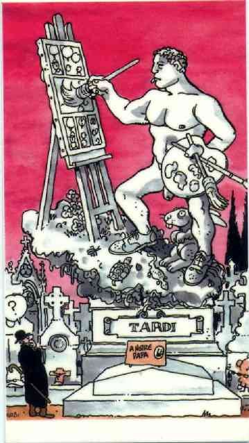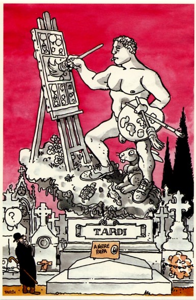 Commentaire : Fait partie des 9 cartes postales contenues dans le portfolio. Couverture de "Le Père Lachaise, petit guide de la mort suave".