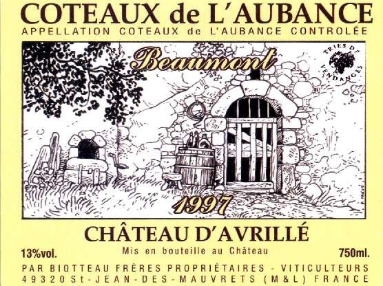 Etiquette de vin - Coteaux de l'Aubance 1997 - Château d'Avrillé