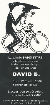 Commentaire : Carton d'invitation (format carte de visite) pour une exposition du travail de David B. intitulée "Mathématiques supérieures - 4" qui s'est tenue du 29 février au 28 mars 2020.
