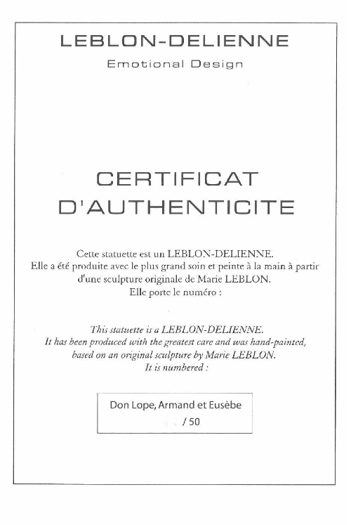 Commentaire : Scène comprenant les 3 personnages qui sont aussi vendus séparément. Existe en édition 650ex et édition 50ex avec Certificat d'authenticité signé. EN ATTENTE DINFOS