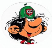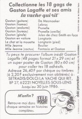 Commentaire : 14ème des 18 autocollants édités pour la Vache qui Rit en 1985 à coller sur un poster inclus dans l'album publicitaire "Lagaffe qui rit".