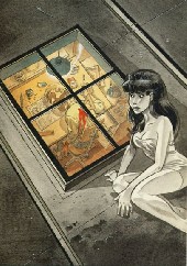 Commentaire : Fait partie des 10 cartes postales contenues dans le portfolio (dessins de : Chaland, Pjotr & Meynen, Colman, Walter Minus, Loustal, Olivier Saive, Gert Dooreman, Maltaite, Borrini & Albert Lingot). Ici, la carte n°7.