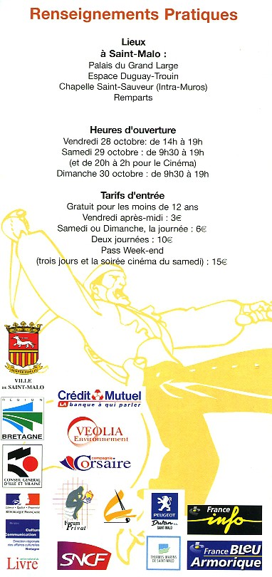 Commentaire : Pré-programme de la 25ème édition du 28 au 30 octobre 2005. Dépliant en trois volets avec programme et boutique du festival.